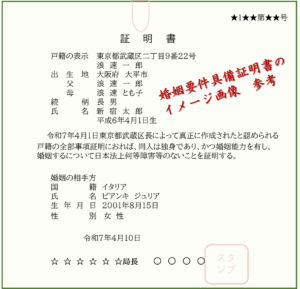 日本人の婚姻要件具備証明書サンプル(イタリア人との国際結婚)
